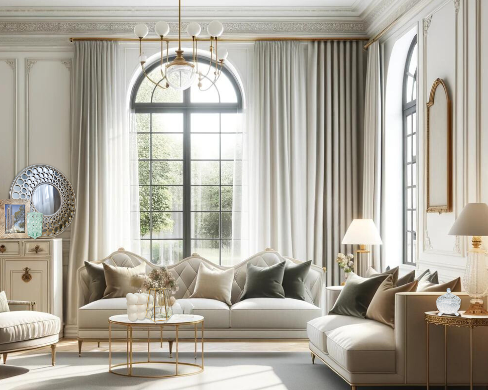 Inspirado en la antigua Grecia y Roma, se caracteriza por la elegancia y la simetría. Materiales nobles, detalles ornamentales y colores suaves (destacado el beige) son elementos clave de este estilo.